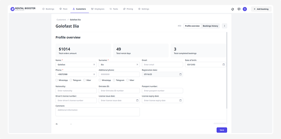 By default, the system already includes forms for the driver’s license and passport — you only need to attach the actual files.