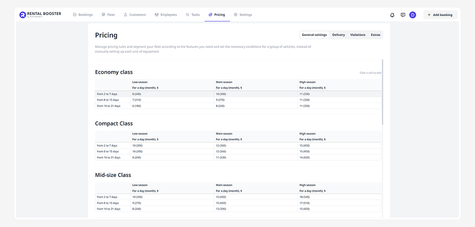 After that, the system will automatically apply the correct prices when selecting a vehicle from a corresponding segment.