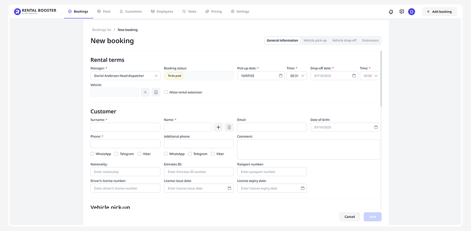 2. A booking page will open, where you can enter the main details: