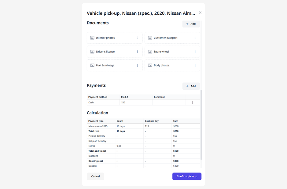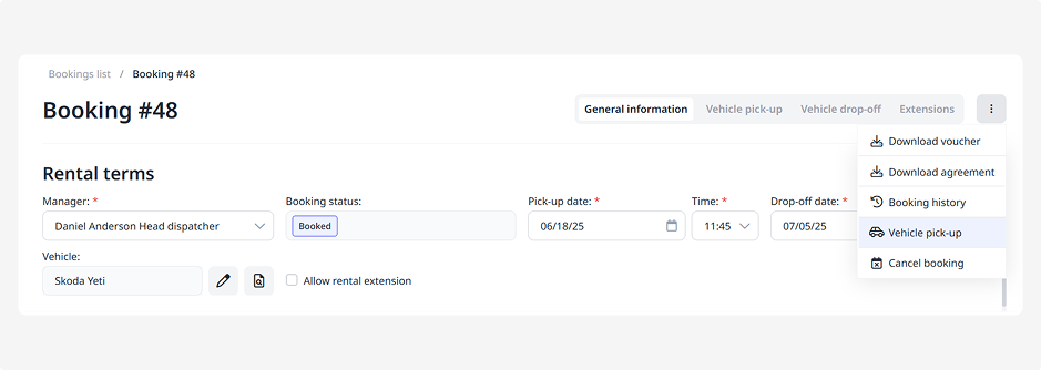 Once the booking is confirmed, the next step is the vehicle pick-up — the process of handing over the vehicle to the customer.
