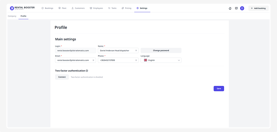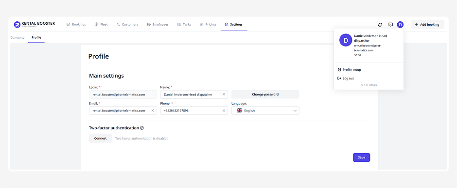 In this subsection, you can update your personal information, change your system login password, and enable two‑factor authentication for added account security.