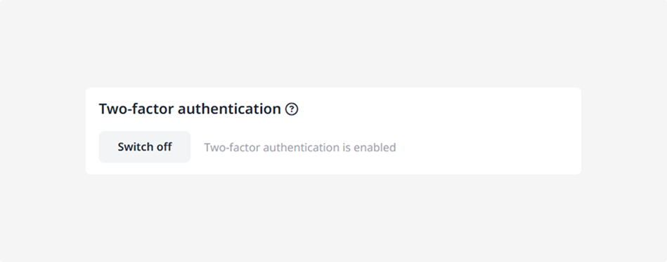 If needed, you can turn off two-factor authentication. To do this, go to the Two-factor authentication block and click Switch off.