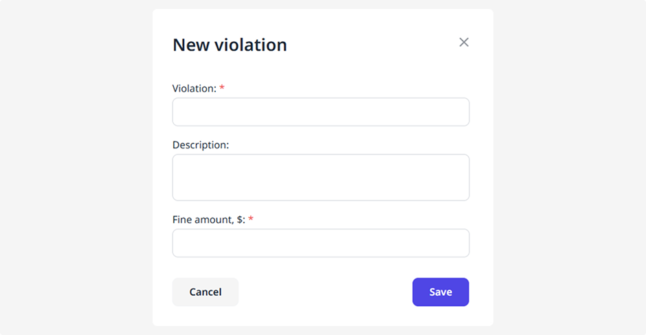 • Description — briefly explain when this violation applies (for example, the vehicle was returned later than agreed without prior notice)