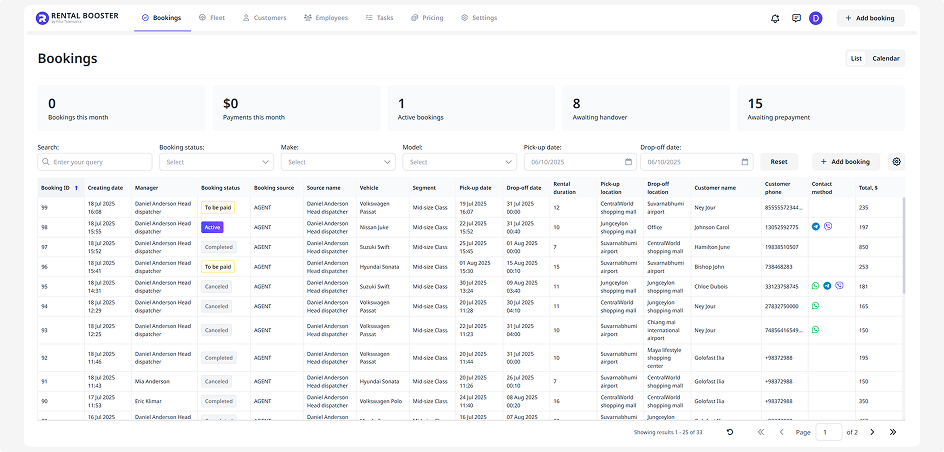 Rental Booster is a CRM system designed for managing a rental business — car, motorcycle, e-scooter, and other vehicle rentals.